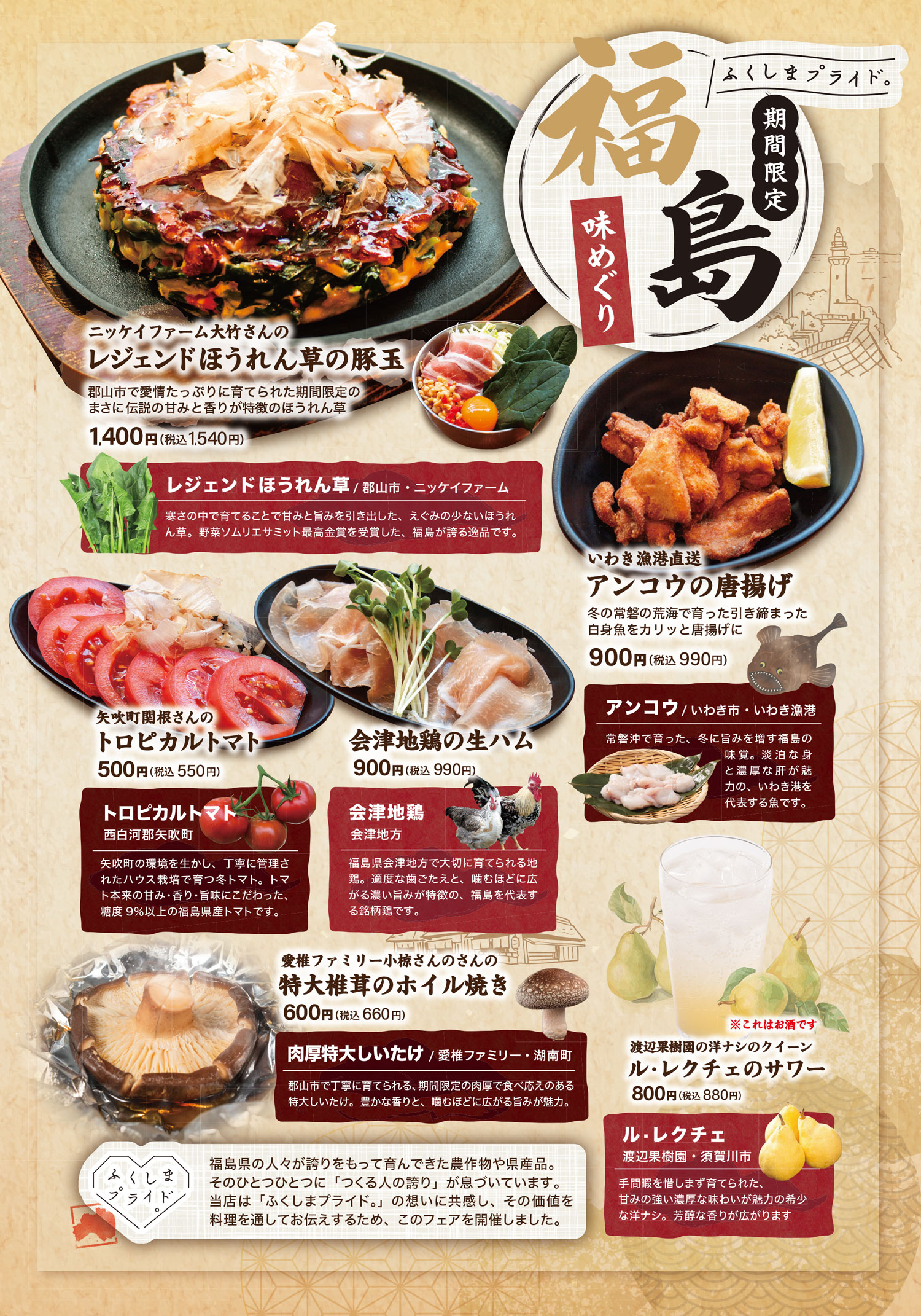再成長を遂げた福島食材の今を是非ご賞味ください。